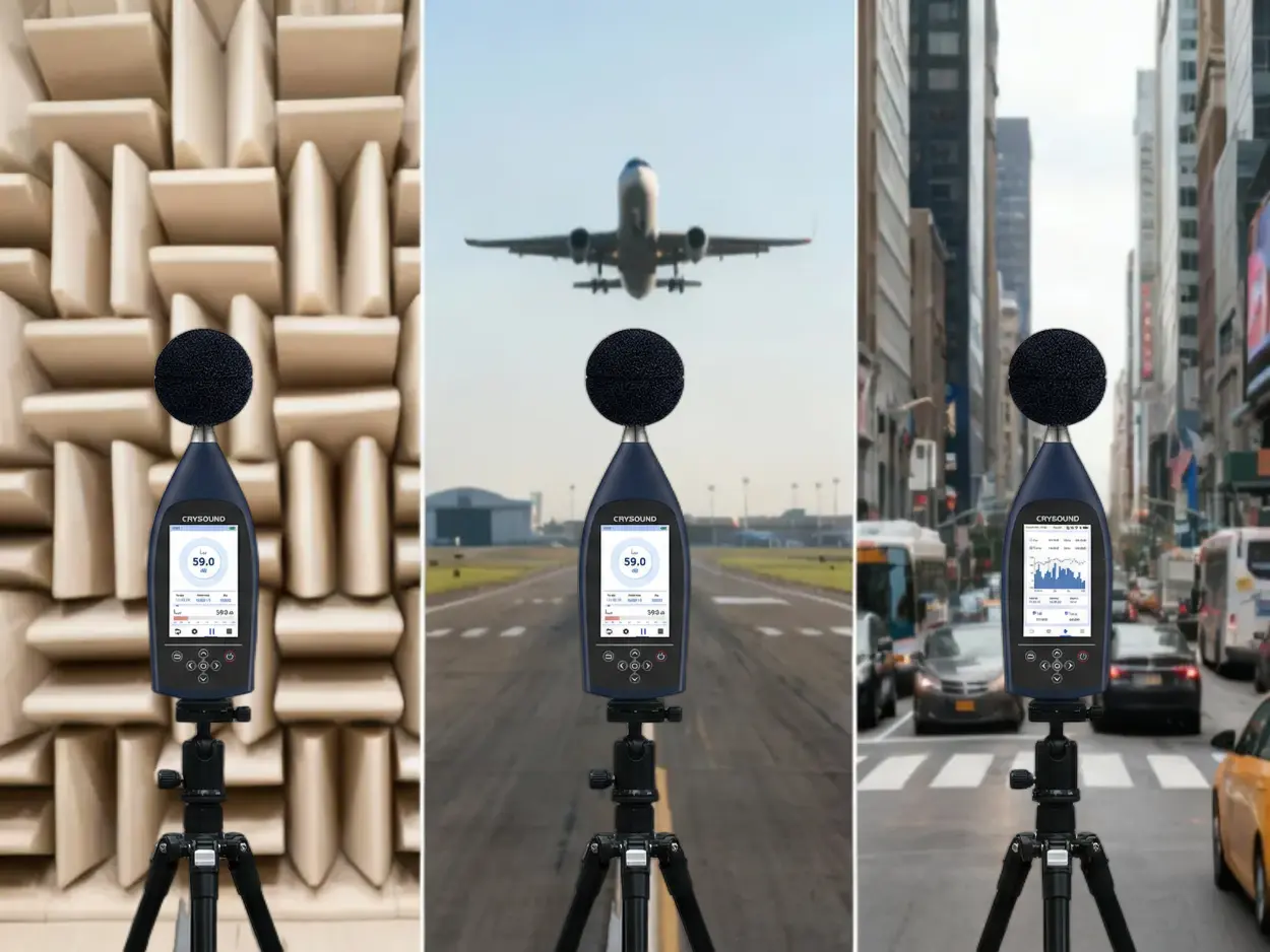 In industrial production and environmental monitoring, excessive noise implies compliance risks or potential complaint disputes. To handle this, you need a professional sound level meter (SLM) that provides "credible, traceable, and analyzable data." Faced with price differences ranging from hundreds to tens of thousands of dollars, and a complex array of parameters, how do you choose without making costly mistakes? We have distilled the complex selection process into a "4-Step Decision Method" to help you quickly find the balance between your budget and your needs. Step 1: Define the "Purpose" — Does the data need to be externally accountable? This is the first watershed moment in selection, directly determining the equipment's "Accuracy Class." Scenario A: Data must be "Externally Accountable" Typical Use Cases: Environmental law enforcement, third-party testing, laboratory R&D, legal arbitration. Must Choose: Class 1 Sound Level Meter. Key Reason: The difference between Class 1 and Class 2 goes beyond reading errors. The core difference lies in the Frequency Response Range. Class 1 Devices (e.g., CRY2851): Typically cover a wide band of 10 Hz – 20 kHz, capturing extremely low-frequency vibrations and ultra-high-frequency noise, fully meeting strict standards like IEC 61672-1:2013 Class 1. Class 2 Devices: Usually have a narrower frequency range (e.g., 20 Hz – 8 kHz) with potential attenuation at high or low ends, making them unsuitable for strict metering or certification scenarios. Scenario B: Used only for "Internal Management" Typical Use Cases: Workshop inspections, equipment spot checks, community surveys, internal process comparisons. Recommended: Class 2 Sound Level Meter. Core Advantage: It meets the vast majority of industrial and environmental noise measurement needs and is the ideal choice for internal control. Step 2: Clarify "Indicators" — What exactly are you measuring?  Selecting the wrong indicators renders the data useless. Focus on the following two points: Frequency Weighting (A, C, Z): Which one to use? A-Weighting (Most Common): Simulates the human ear's response (insensitive to low frequencies). Must be used for Environmental Noise Evaluation and Occupational Health Assessments (e.g., 85 dB(A) limits). C-Weighting: Less attenuation at low frequencies, reflecting the total energy of the sound more truly. Often used for Mechanical Noise and Impact Sound where rich low-frequency components exist. Z-Weighting (Zero Weighting): Flat response across the entire frequency range with no attenuation. Must be used when you need Spectrum Analysis or deep research into noise components to preserve the original signal. "Instantaneous Value" or "Statistical Value"? For quick site checks: Focus on Lp (Instantaneous Sound Pressure Level) and Lmax (Maximum Sound Level). For scientific assessment or reporting: You must have Leq (Equivalent Continuous Sound Level). This is the core metric for evaluating noise energy over a period of time. Professional equipment (like CRY2850/2851) comes standard with integrating functions to automatically calculate Leq. Figure 1. Software Interface Diagram Step 3: Confirm if "Analysis" is needed — Do you need to find the noise source?  This distinguishes a "regular noise meter" from a "professional sound level meter." Looking at a total value (e.g., 85dB) only tells you "it's noisy here"; seeing the spectrum tells you "where is it noisy." When do you need Spectrum Analysis (1/1 Octave, 1/3 Octave, or FFT)? Noise Control: Determining if noise comes from a fan (aerodynamic noise) or a motor (electromagnetic noise). R&D: Comparing sound quality differences between competing products or iterations. Diagnostics: Distinguishing between high-frequency bearing squeal and low-frequency structural resonance. Selection Advice: Taking the CRY2851 as an example, it supports both OCT Analysis and FFT Analysis. If your goal is to "solve problems" rather than just "record numbers," be sure to choose a device with spectrum functions. Figure 2. Measurement Demonstration Step 4: Plan the Measurement "Mode" — Single measurement or long-term monitoring? Many projects fail because the device "measures accurately, but is hard to use." Dynamic Range: Say goodbye to "Manual Gear Shifting" Old equipment requires manual range switching, which is prone to errors. Modern sound level meters (like CRY2851) feature a >120 dB wide dynamic range, covering everything from whispers to roaring engines without switching gears—preventing errors and improving efficiency. Data Export: Ensure data is "Portable and Usable" Ensure the device supports automatic storage to an SD card or internal memory and exports in universal formats (like CSV). Avoid the trap of "measuring data but failing to record it manually." Remote Monitoring Capability (Essential for Outdoor/Long-term)  For long-term scenarios like construction sites or traffic monitoring, the device must have: Communication Functions: (LAN/Serial Port) for real-time remote data transmission. Outdoor Protection: (e.g., paired with NA41 Outdoor Kit, IP65 rating) to withstand rain and dust; otherwise, the equipment is easily damaged. Quick Selection Cheat Sheet To help you decide quickly, we have summarized three typical application scenarios based on the four-step method above: Figure 3. Handheld Measurement Operation The "Avoid Pitfalls" Checklist: Check these 5 points last Check the Standard: Confirm compliance with the latest IEC 61672-1:2013 standard. Check Bandwidth: Even for Class 2 meters, ensure the frequency range covers your main noise sources to avoid missed detections. Check Calibration: Buying a Class 1 SLM requires a Class 1 Sound Calibrator (e.g., CRY563A); otherwise, the system accuracy is downgraded. Check Range: Prefer "Wide Dynamic Range" or "Auto-Range" devices; refuse manual gear shifting. Check Accessories: Windscreens and protective cases are mandatory for outdoor use. Selecting a sound level meter