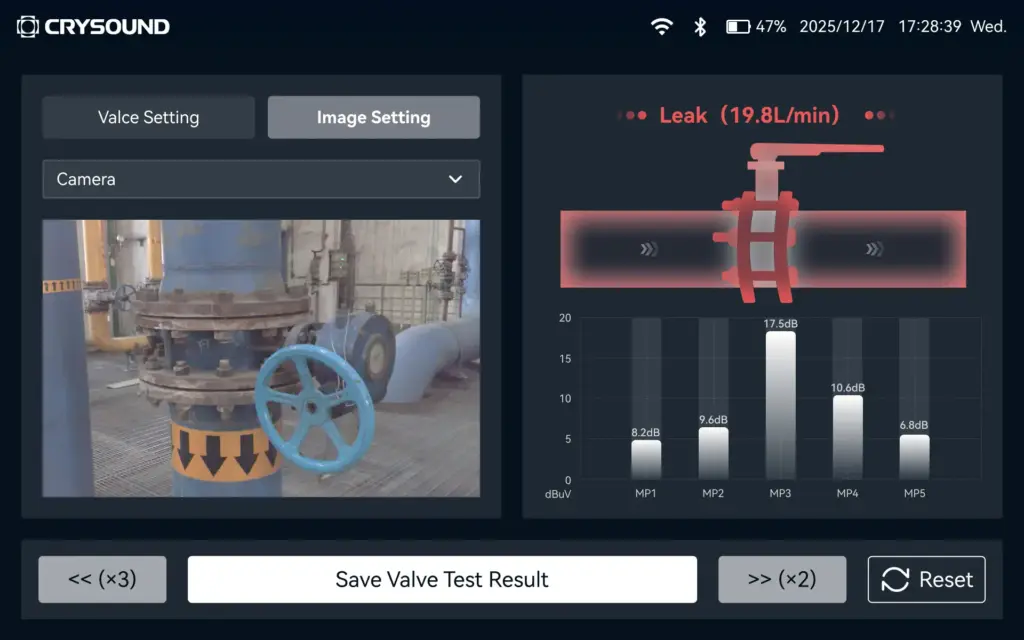 - By analyzing the dB level at each measurement point and the features of the ultrasonic signal, the system automatically determines the internal leakage result based on algorithmic data, reducing reliance on manual interpretation.