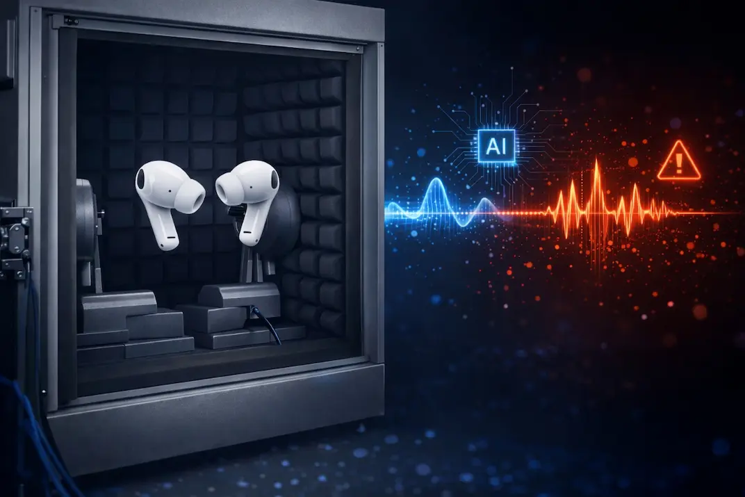 The CRYSOUND AI-based headphone acoustic anomaly testing solution is built around the CRY acoustic anomaly testing system.