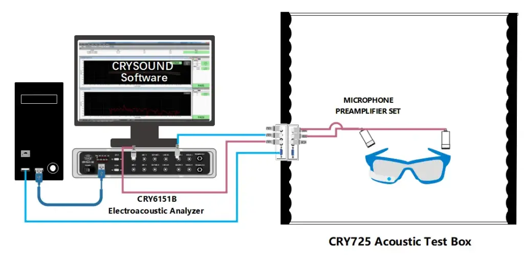 CRYSOUND prend en charge des algorithmes d'EQ personnalisés. Dans un projet de production de masse, un calibrage d'EQ des haut‑parleurs a été introduit au poste de test final dans des conditions de champ libre, et les résultats ont été acceptés par le client, ce qui valide l'applicabilité et la pertinence pratique de cette solution pour les produits lunettes.