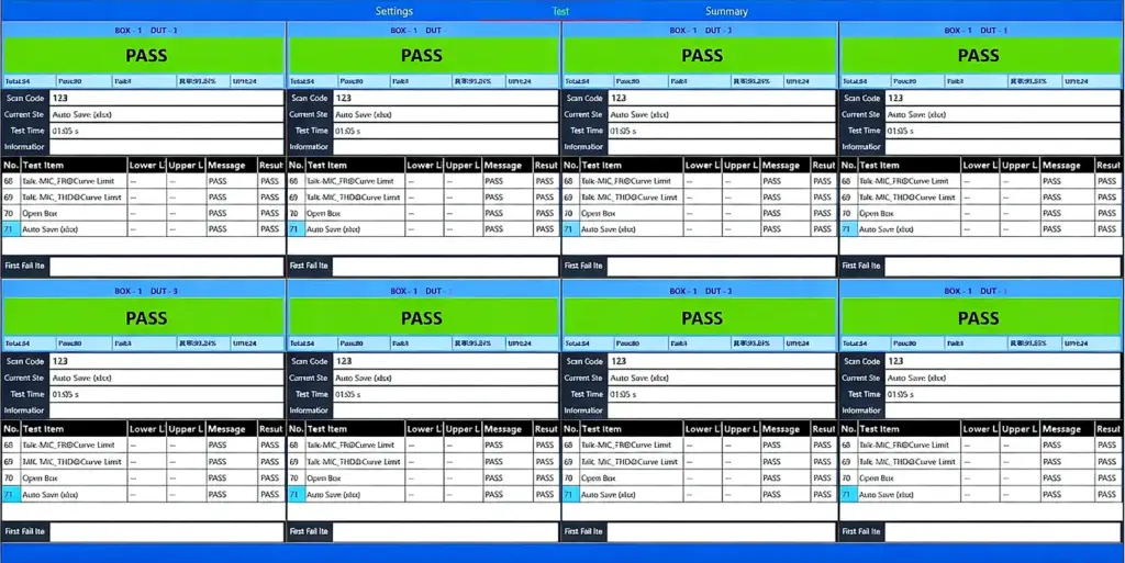 La solution de test PCBA de CRYSOUND intègre la validation des performances RF et audio dans une architecture parallèle 1‑vers‑8, permettant des tests synchronisés électriques, RF, audio et de puissance. Cette plateforme unifiée améliore l'efficacité et l'adaptabilité des tests PCBA pour les TWS, les enceintes intelligentes et les appareils portables, tout en favorisant une production à grand volume, rentable et à intégration rationalisée.