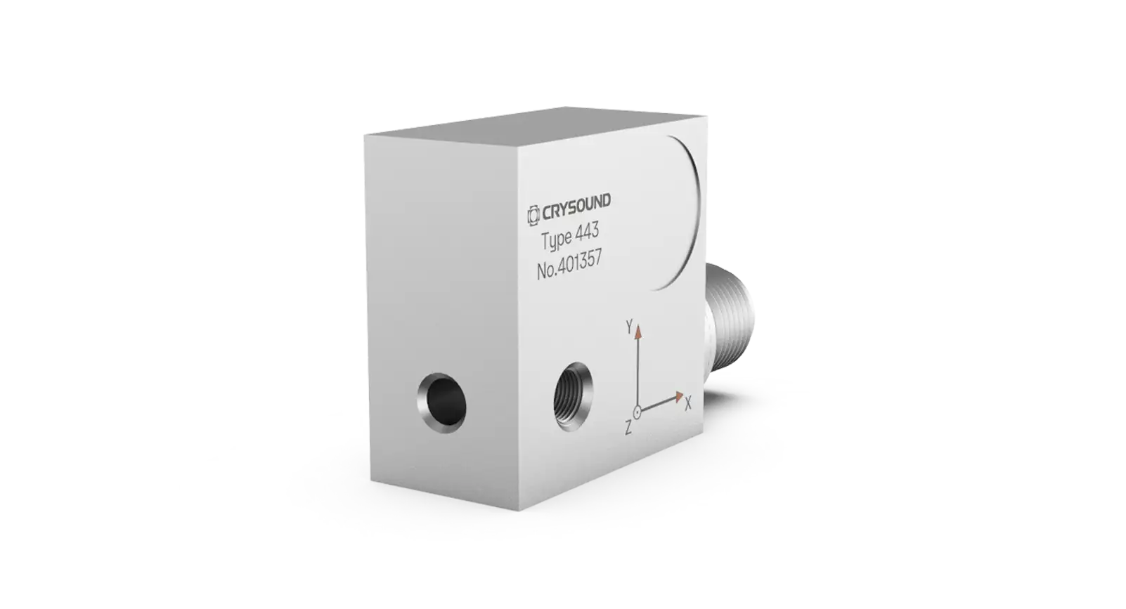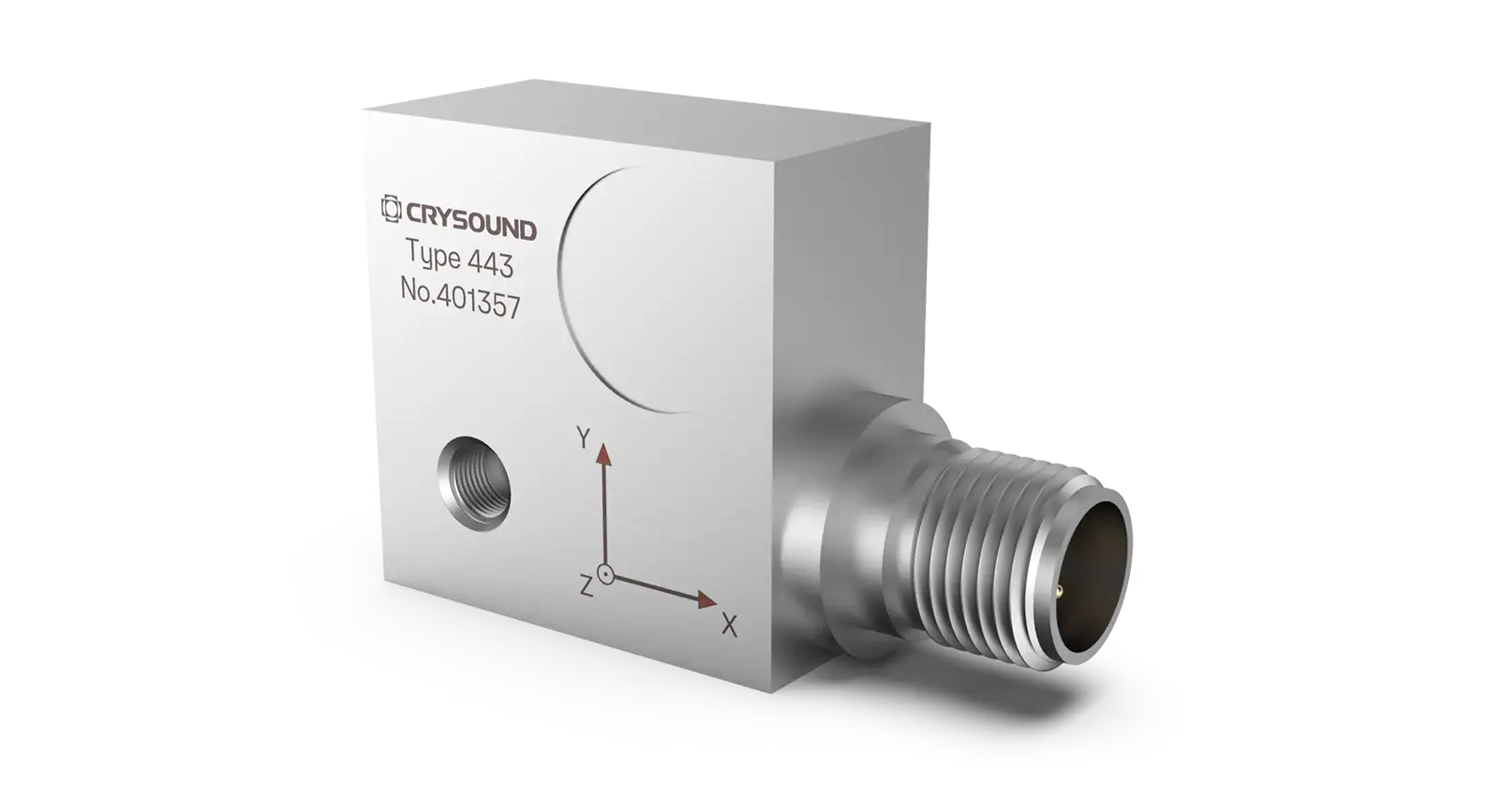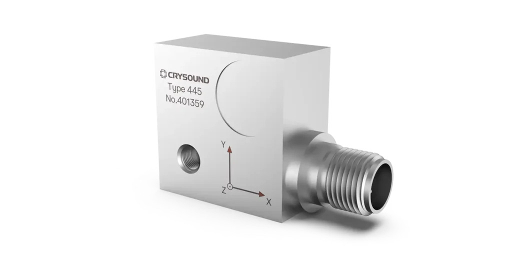 The CRY443 is a triaxial acceleration sensor with a side-end M12*1 (4-pin) output that is mounted to an object via a 10-32 UNF bolt. It is often used for on-line monitoring of vibration state of industrial equipment.