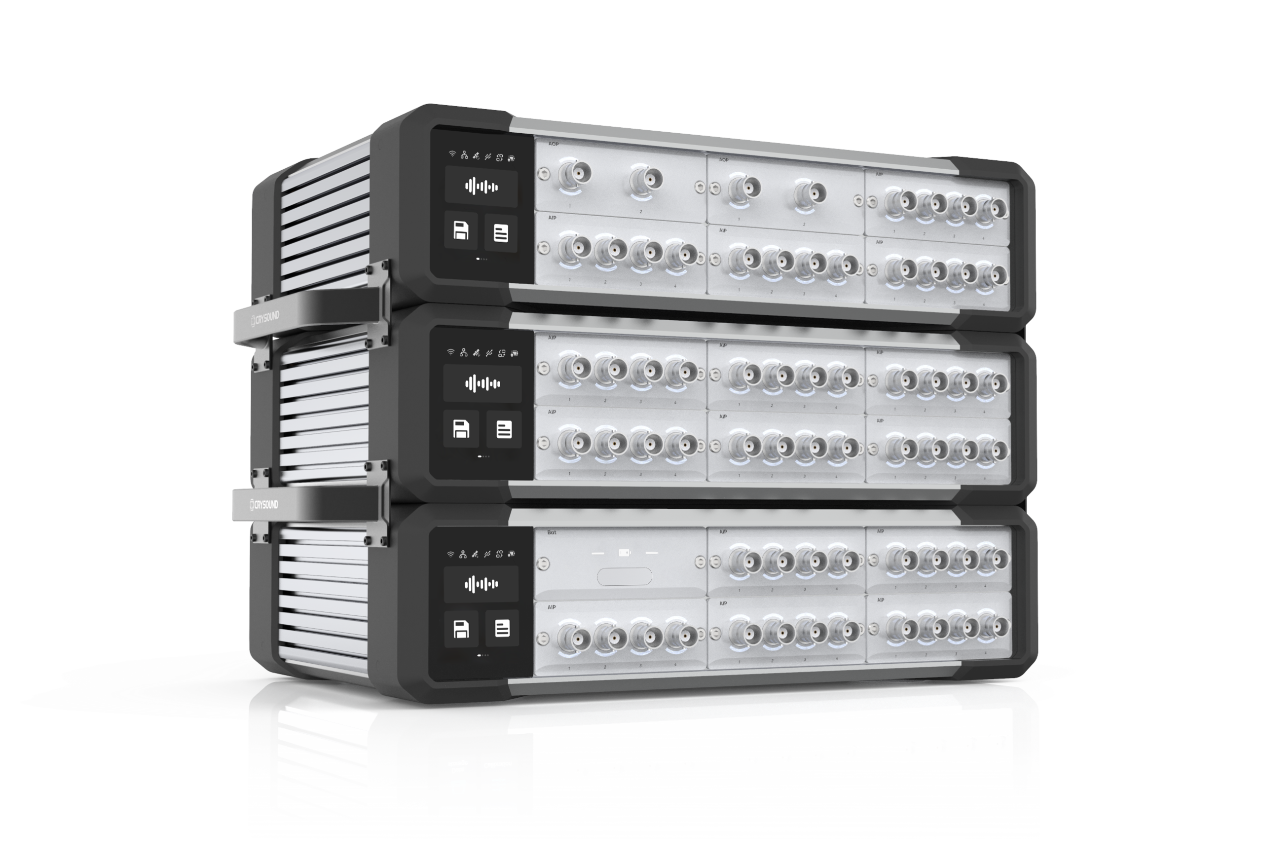 SonoDAQ features modular scalability, supporting 4–24 channels per unit and expandable to 1000+ channels via daisy-chain, star, or hybrid topologies. Each slot supports independent sampling rates, offering maximum flexibility.