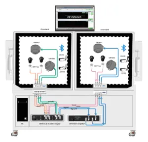 CRYSOUND provides a automated headphone test system solution.by incorporating a wide range of test items, this comprehensive testing approach significantly speeds up the overall testing process. The automated TWS Bluetooth headphone test utilizes standard acoustic test equipment, manipulators, and module designs, ensuring an effective and efficient testing procedure. These measures enable accurate and reliable assessment of headphone performance, contributing to improved quality control and faster production cycles.