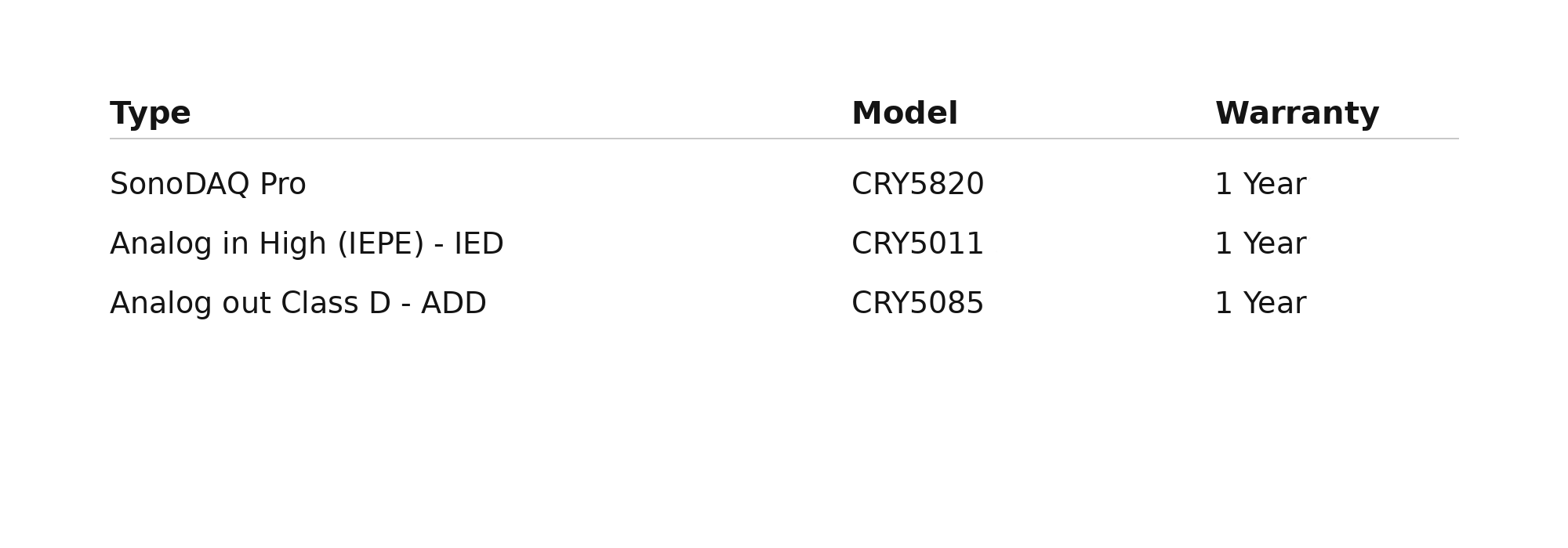 The 10-year warranty, beginning on the date of shipment, applies to CRY3000 Series Microphones and Microphone Sets, Ear Simulators and Sets, Couplers and Sets, Mouth Simulators, Preamplifiers, and Microphone Power Supplies, with certain exclusions.The 1-year warranty, beginning on the date of shipment, applies to Calibrators and Accelerometers, with certain exclusions.